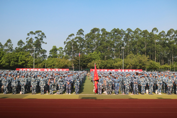 刘洊波作军训动员讲话。他指出,今年是中国人民抗日战争暨世界反法西斯战争胜利80周年。80年前,无数先辈用血肉之躯筑起民族长城。“今天,我们身处的和平校园,正是那段岁月的馈赠。军训是同学们铭记历史、传承伟大抗战精神的课堂。”他希望同学们要深刻领会军训的意义,不仅要学习军事技能,更要深刻体会军人的奉献精神、家国情怀,把军训当作磨练意志、提升自我的宝贵机会,在训练中思考和成长,在体验中感悟责任,真正做到“训有所获,念有所得”。要严格遵守军训纪律,时刻以军人的标准严格要求自己,服从教官指挥,不折不扣完成每一项训练任务。尊重老师,尊重同学,在团队协作中学会互助和包容,敢于挑战自我、超越自我,用昂扬的斗志展现广州城理学子的青春风采。要始终绷紧安全之弦,牢固树立安全第一的思想,训练前要热身,身体不适及时报告。