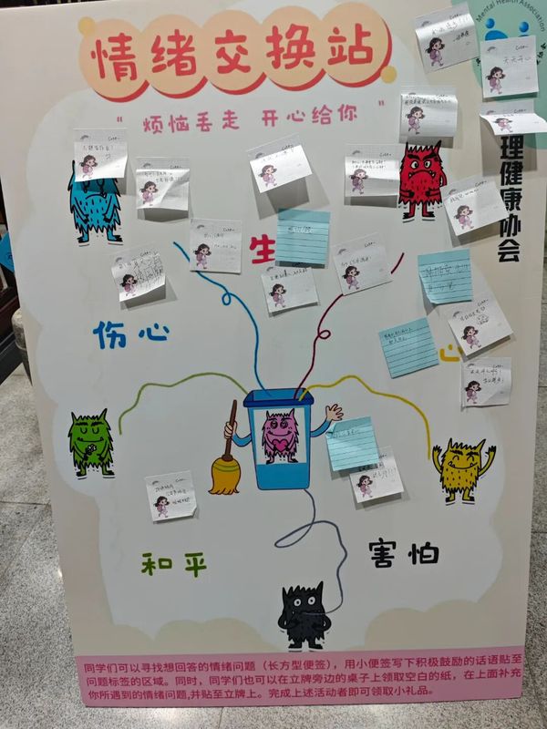 同学们在工作人员的指引下,有序排队写下标签。关于自己困在心中的疑惑、烦恼、委屈...写下来。为同学们搭建了一个表达情绪、交流情感的平台,有助于大家关注自身心理健康,学会正确处理情绪问题,同时也增强了同学间的互动与关怀,营造了积极健康的校园心理氛围。