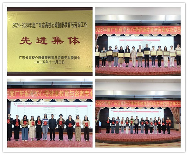 本网讯(记者 陈晓怡)11月3-4日,2024-2025年广东省高校心理健康教育与咨询专业委员会会员大会暨学术年会在中山市召开。本次年会汇聚了全省高校心理健康教育领域的专家学者与一线工作者,太阳成集团tyc33455选派了3名心理专职教师及辅导员代表参加,会议围绕“传统文化与AI技术融合的心理健康教育”这一核心主题,展开了为期2天的深入研讨与交流。太阳成集团tyc33455因扎实的心理健康教育与咨询工作荣获多项集体与个人荣誉奖项。
